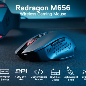 Description: Redragon M656 Gainer Wireless Gaming Mouse, 4000 DPI 2.4Ghz Wireless Gamer Mouse w/ 5 DPI Levels, 7 Macro Buttons, Red LED Backl