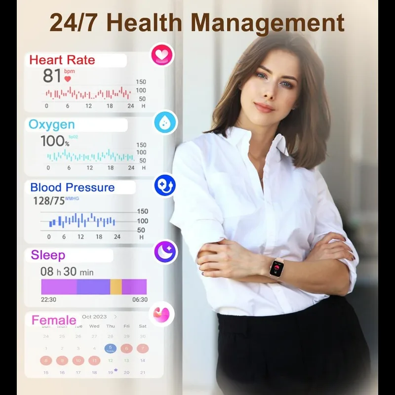 Description: Smart Watch Fitness Tracker with Advanced Wireless Calling, Music Player, Health & Fitness Monitor with Number of Steps Taken, Heart Rate, Blood Oxygen, Sleep and Blood Pressure monitors.