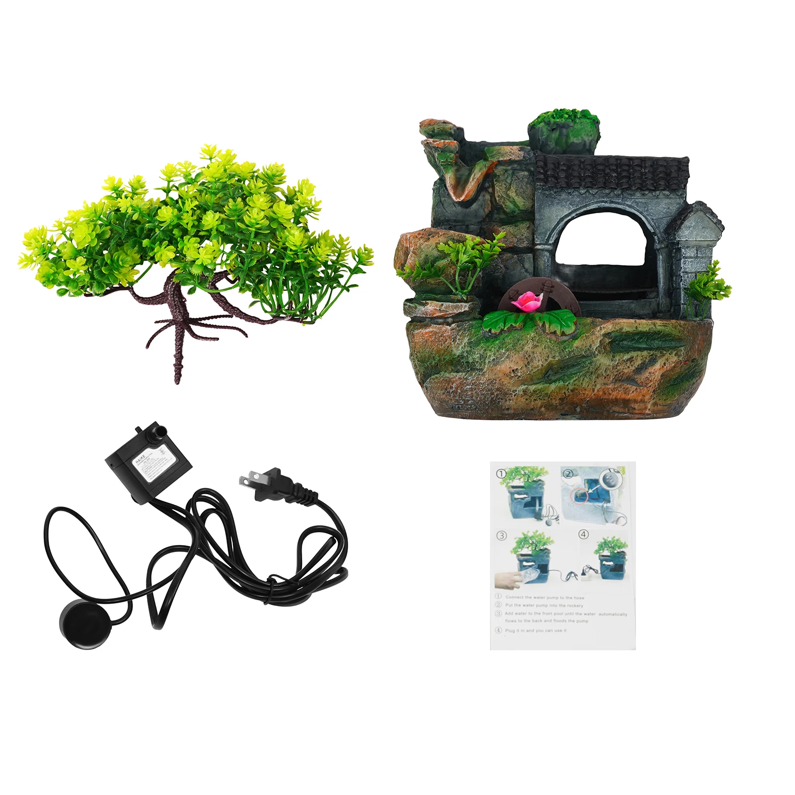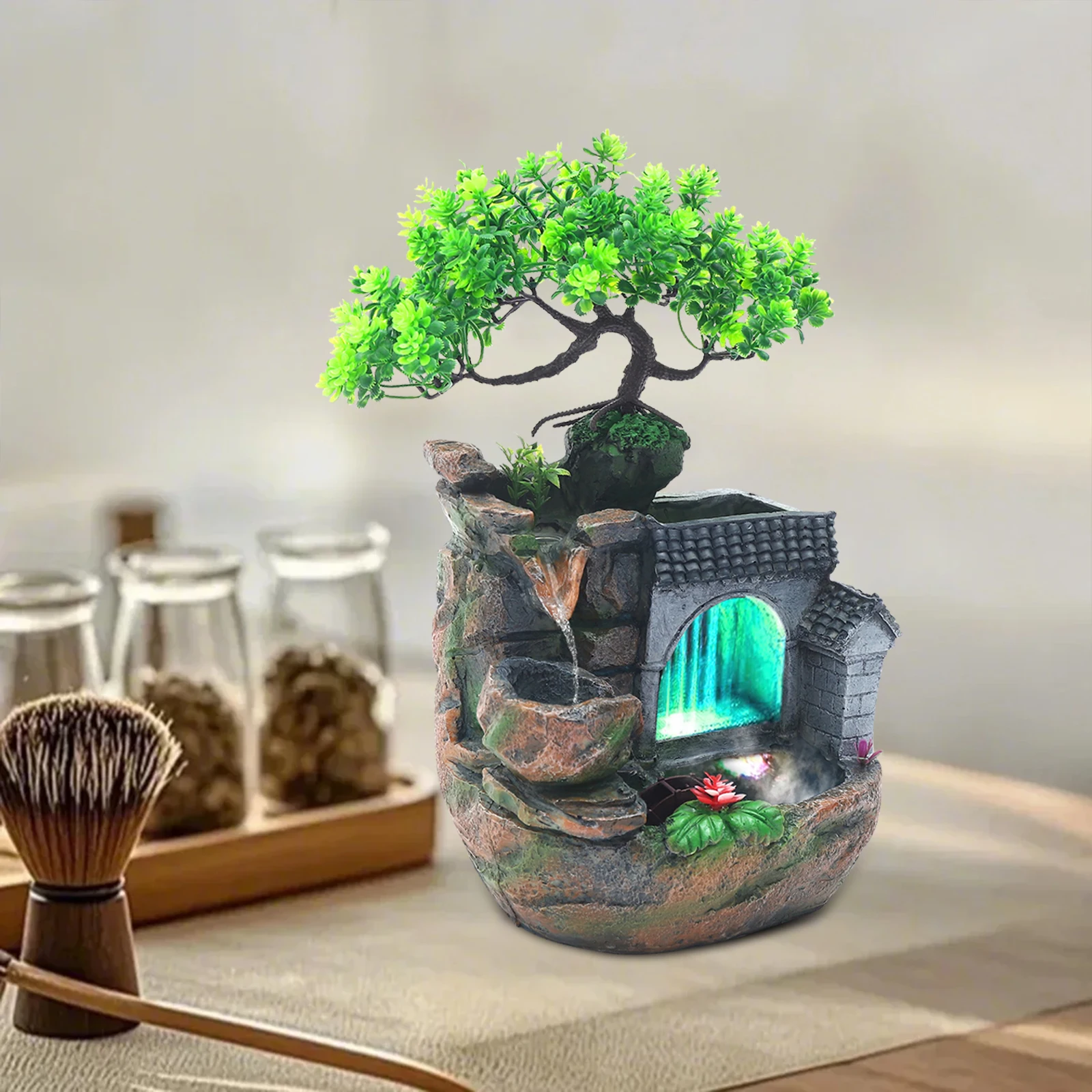This desktop resin fountain features a Bonsai styled quiet space for home, or office decor.