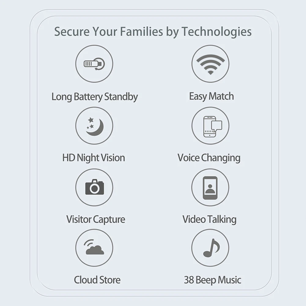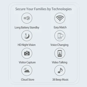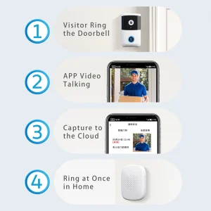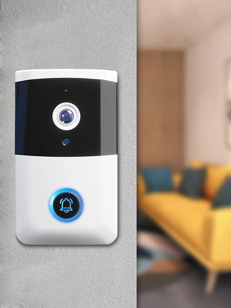 Description: This wireless video doorbell has infra-red night vision camera with two-way audio. This provides a smart door bell for home security alarm system.
